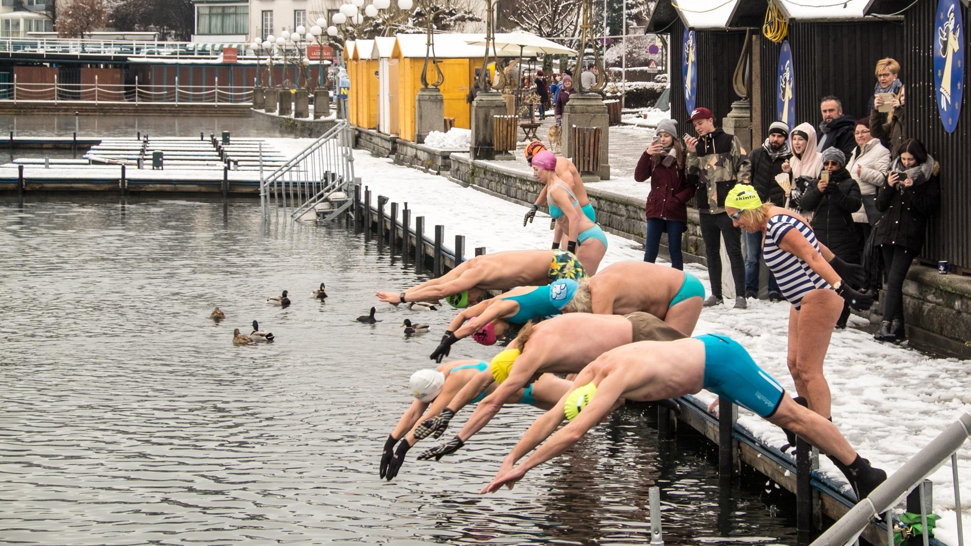 Sonntagnachmittag in Velden am Wörthersee. Der Ort, der im Sommer so wie Westerland auf Sylt ist. So schön, dass sich leider auch die Leute mit dem MEHR an Geld für diesen Ort interessieren. Aber auch im Winter bei 3 Grad Celsius und ein bisschen Schnee sieht man sehr teure Autos und selbst mitgebrachte Fotografen, die einem die perfekte Instagram Inszenierung ermöglichen. Gut, ich sitze gerne Sonntag nachmittags auf der Couch trinke Tee und lese Zeitung. Aber jeder so wie er mag. An diesem doch schon kalten Sonntag hat der Veldener Wassclub, zum Baden geladen. Kann man machen! In Anbetracht der Aussentemperatur war das Wass mit 6,5 Grad Celsius auch recht angenhem temperiert. Wenngleich mir schon beim Zuschauen kalt war.