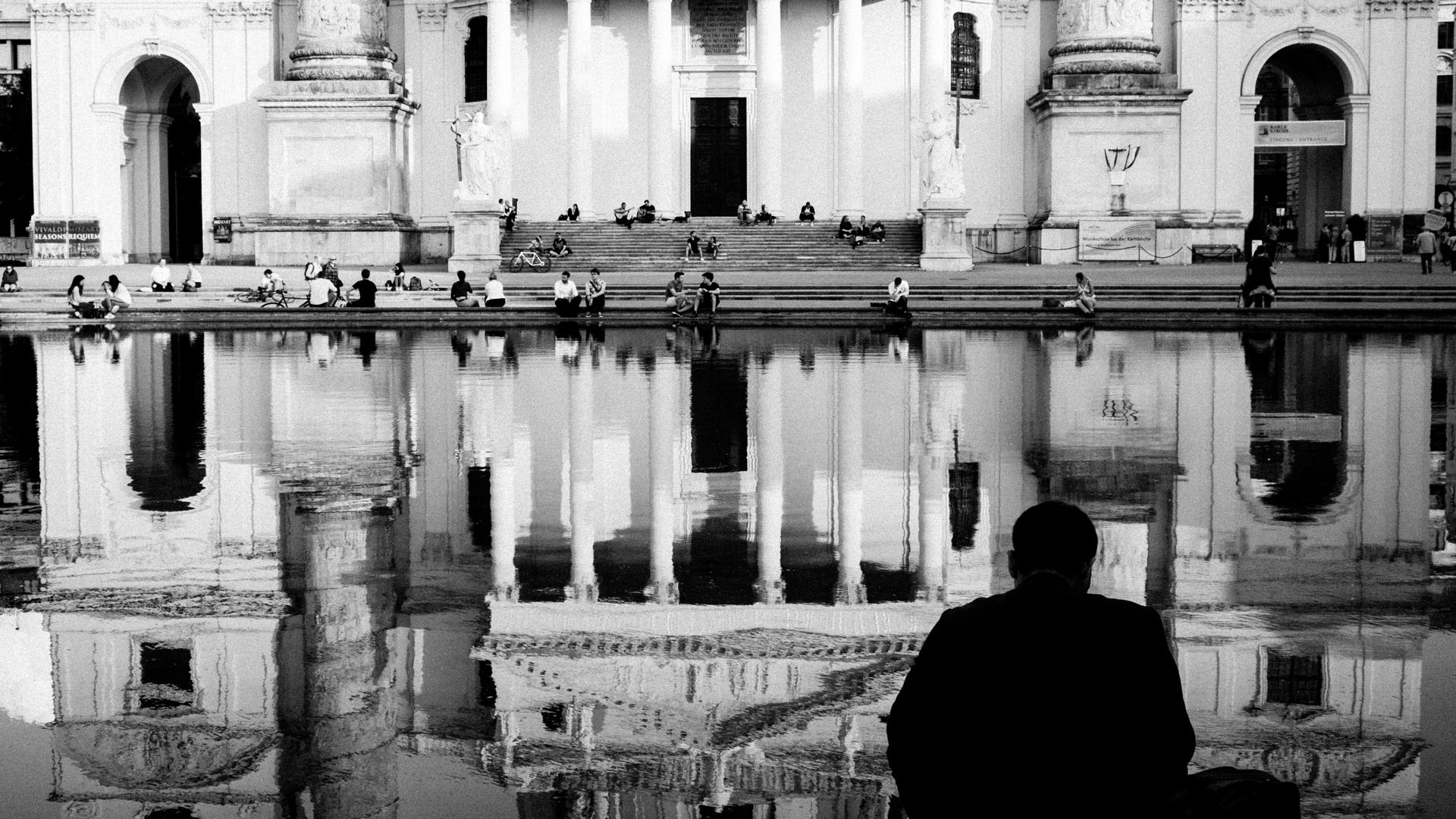 Nach einem langen Tag in Wien, freut man sich, wenn man sich am späten nachmittag einfach mal wo hinsetzen kann. Wie hier, mit Blick auf die Karlskirche unweit der TU. Nach den unzähligen Kilometern zu Fuss, den diversen Espressi (ich war mit Italienern unterwegs) und dem ausgezeichnetem Essen (ich war mit Italienern unterwegs) im Neni am Naschmarkt war ich ganz froh mal ein bisschen zu verweilen. Die Stadt ist so beeindruckend, an jeder Ecke kommt wieder etwas neues, architektonisch schönes, was man entdecken kann, dass ich gar nicht viel fotografiert habe. Erst am Ende des Tages habe ich die Kamere raus geholt, dem Treiben am Karlsplatz zugeschaut und ein paar Eindrücke wie diesen hier festgehalten.