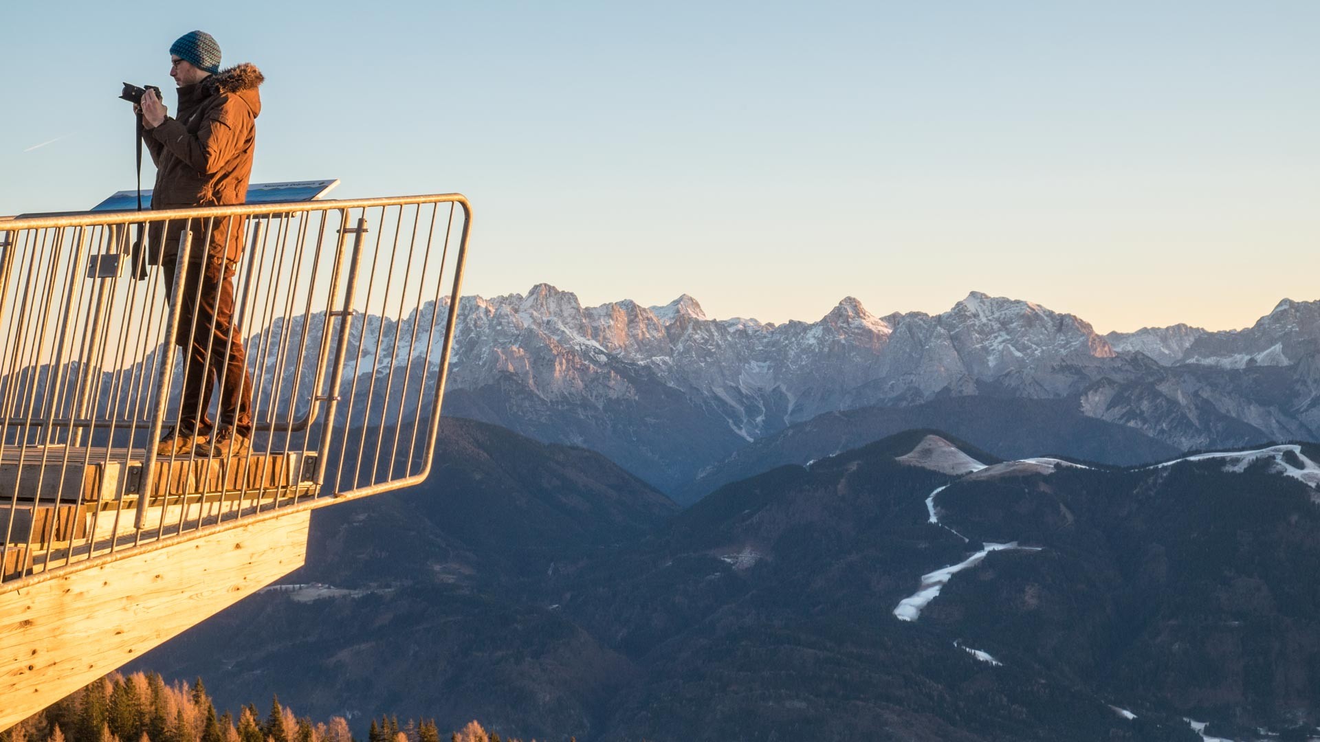Das reale, richtige Leben holt mich ein. Daher war ich in Österreich. Aus Gründen also, die hier nicht weiter nennenswert sind. War zum letzten Mal vor über 15 Jahren in Österreich, nämlich im Kleinwalsertal. Jetzt hat es mich für ein paar Tage nach Villach verschlagen. Landschaftlich das komplette Gegenteil von Dithmarschen. Aber auch schön, viel Sonne und Berge. Nur in einem sind sich Dithmarschen und Villach gleich: kein Schnee im Dezember. Wie dem auch sei, hier der Blick vom Dobratsch, so heißt der Berg, den mein Fremdenführer und ich erklommen haben. Erklommen ist ein bisschen übertrieben, den Großteil der Strecke sind wir mit dem Auto gefahren. Im Hintergrund, die großen Berge gehören übrigens schon zu Slowenien....