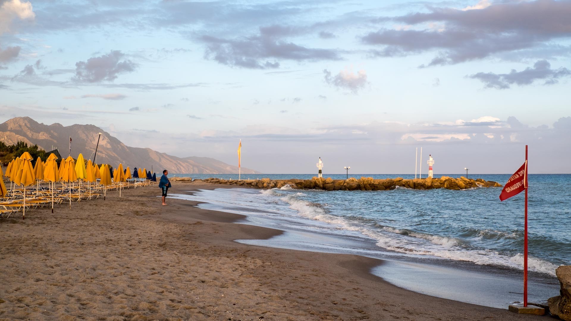 Das schöne am Hotel, in dem wir sind, ist es, in sehr kurzer Zeite am Strand zu sein. Der Strand gehört nämlich zum Hotel und ist in 2 min zu Fuß erreichbar. Das es Ender der Saison ist, sind auch nicht all zu viele Menschen am Strand und belegen die Liegen. In den letzten Tagen war es allerdings so stürmisch (nicht wie auf dem Foto), sodass es am Strand nicht auszuhalten war. Man hat sich mehr wie in einem Sandsturm gefühlt.