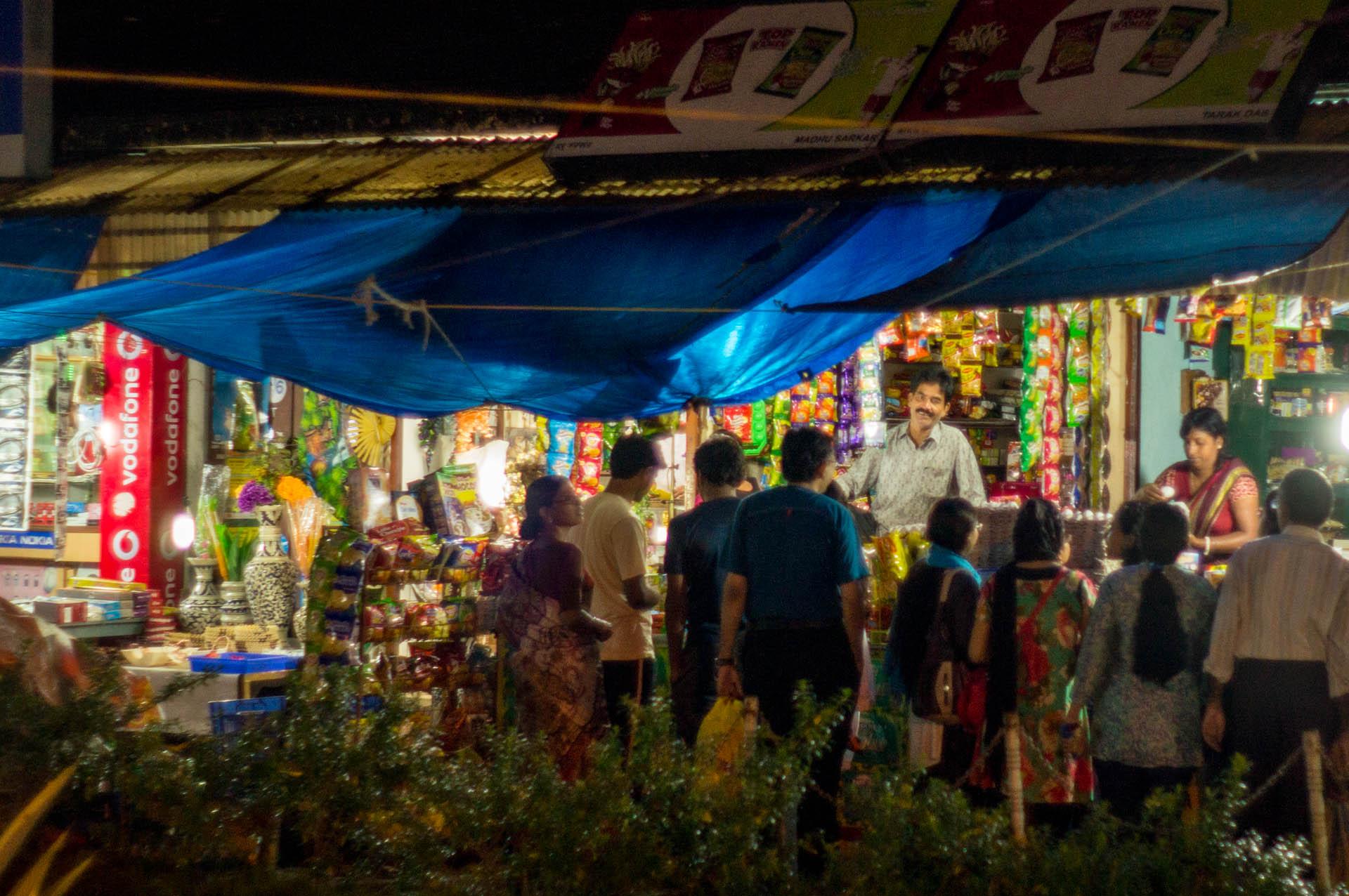 Außerhalb des Campus gibt es ein kleines Geschäft, in dem man Bier und andere Sachen kaufen kann. Es ist das einzige weit und breit und verfügt nur über zwei kleine Durchreichen, die von Plexiglas und Gittern umgeben sind. Dort habe ich, wie der Zufall so will, dann auch zwei Kollegen aus dem Institut getroffen, die zufällig auch Bier kauften. Getrunken wird es dann auf dem Zimmer. Auf dem Weg zu diesem Geschäfft, läuft man durch das wahre Leben Indiens, welches von der Nähe zu der Eisenbahn geprägt ist. Rund um die Haltestellen entwickelt sich soziales Leben und Handel, da hier die Eisenbahn Hauptverekhrsmittel ist. Auf dem Weg zum Biergeschäft musste ich solch eine Lebensader passieren, wobei dieses Foto entstanden ist.