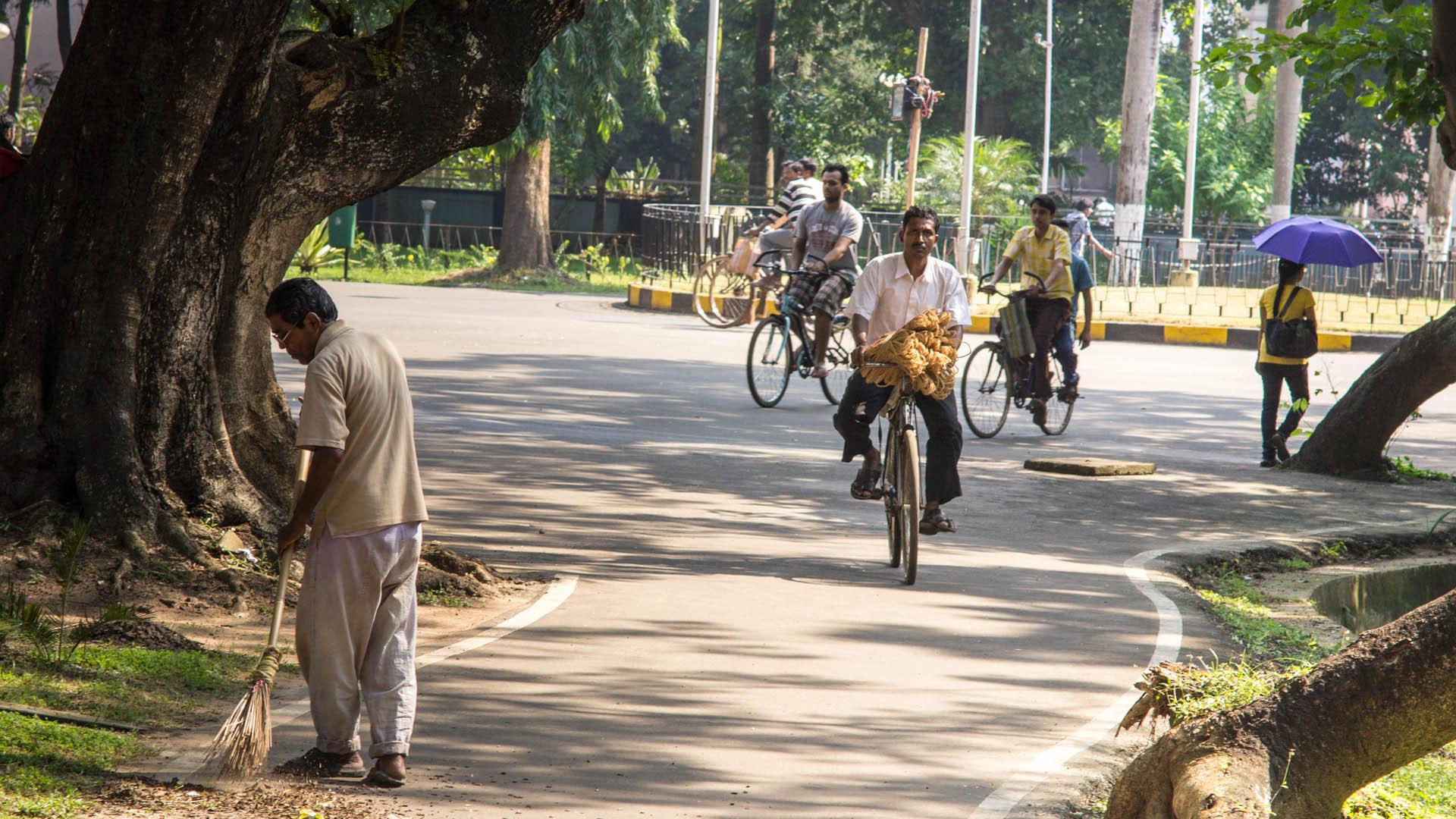 Hier am IIT Kharagpur (das IIT steht für Indian Institute of Technology) studieren etwa 4500 Studenten (Bachelorstudenten) und ca. 2500 Master- und PhD-Studenten. Die Uni wurde 1952 auf dem ehemaligen Gelände eines britischen Internierungslagers gegründet und zählt zu den führenden technischen Universitäten Indiens. Der Universität ist der Vergleich in internationalen Rankings sehr wichtig (man gehärt zu den besten 50 Unis Asiens) und die Absolventen sind überaus stolz auf dem IIT Kharagpur studiert zu haben. Das schöne an der Uni ist, dass allle! auf dem Campus leben, der etwa 8,5 km² groß ist. Zu sehen ist das Hauptgebäude der Uni, natuerlich mit Rikscha-Fahrer.