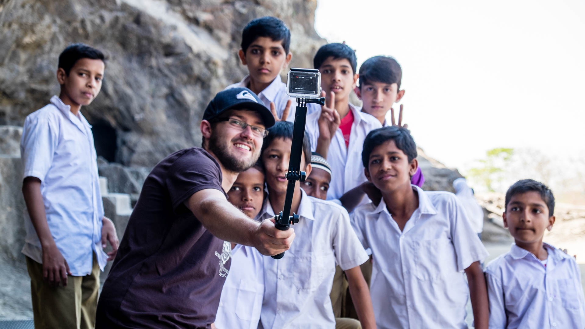 Manchmal ist alles eine Frage der Perspektive. So wie an diesem Tag bei den Ellora Caves, als wir uns die in den Stein geschlagenen Höhlen anschauten und für unzählige Fotos mit Schülerinnen und Schülern posieren mussten. Für uns schon so etwas wie Routine, weil es vorher in Kerala und besonders auf der Hochzeit in West-Bengalen viele Fotos mit uns gegeben hat. Für die Schüler allerdings, die hier mit Jan ein Selfie machen, war es das absolute Highlight sich mit ihm zu fotografieren. Alles eine Frage der Perspektive eben.
