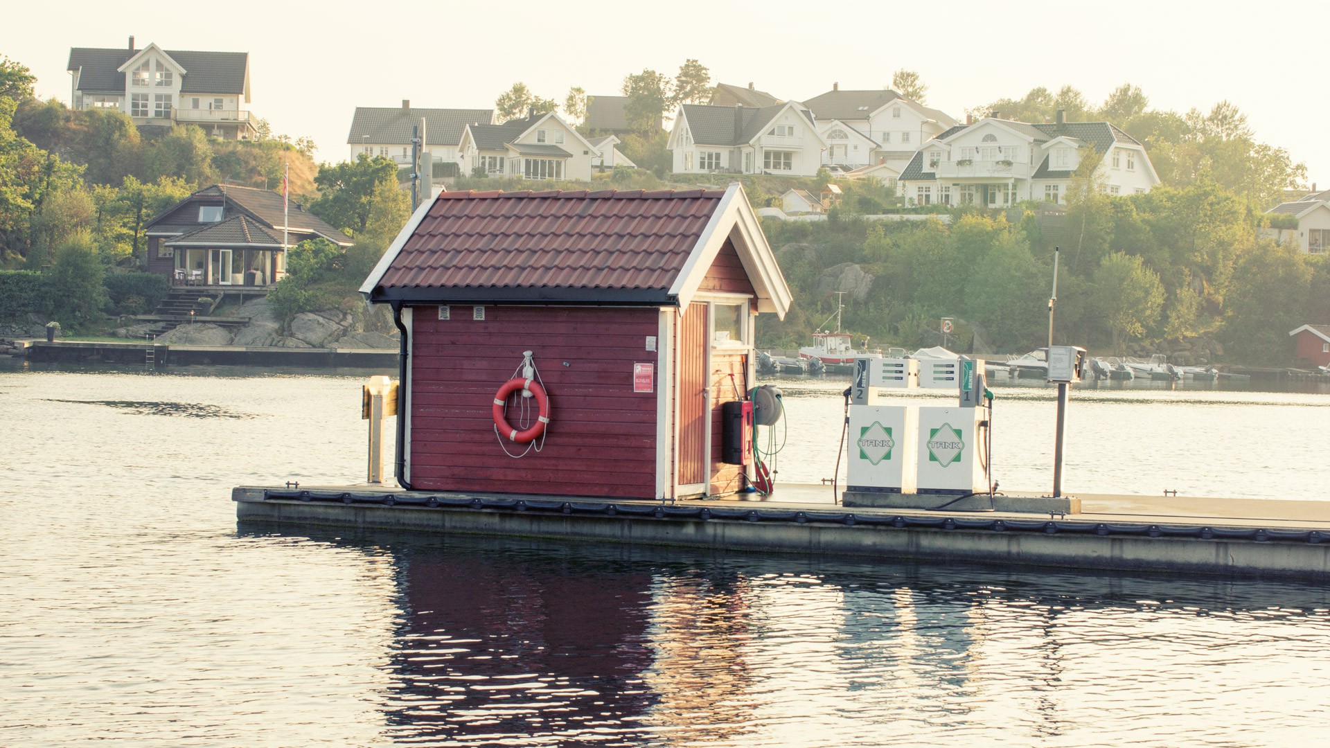Natürlich gibt es auch in Norwegen mehr als genug Tankstellen, obgleich hier der Anteil an Elektroautos viel größer als in Deutschland ist. Jeden Tag begegnem einem hier mehrere Elektroautos und fahren leise surrend an einem vorbei. Die Tankstelle zu Wasser hat natürlich eine ganz andere Bedeutung. Denn zum Einkaufen nimmt man zwar das Auto, die frisch gekauften Sachen müssen aber alle mit dem Boot auf die kleinen Inseln im Fjord gebracht werden. So ist die Tankstelle im Hafen der zentrale Anlaufpunkt und immer viel los.