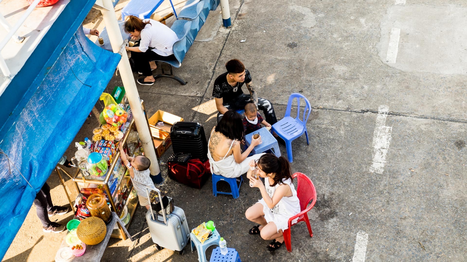 Auf der öffentlichen Fähre von Tuần Châu in der Hạ Long Bucht zur Insel Cát Bà kann man die gemütlichen Momente im vietnamesischen Alltag erleben. Diese Momente gibt es eher nicht auf den Touristenbooten oder organisierten Trips, sondern dort, wo auch die Einheimischen reisen. Auf der öffentlichen Fähre sind kurz nach Ablegen improviesierte Verkaufsstände aufgebaut und die obligatorischen Plastikstühle (wie immer Version Kindergarten) herausgeholt worden. So wird die Fahrt durch die traumhafte Karst-Felsenlandschaft zur Nebensache. Die Verpflegung geht natuerlich vor. Ich habe mich jedoch gegen die Mini-Plastikstühle und die Stärkung entschieden und lieber fotografiert. Für mich ist diese Fährfahrt allerdings auch kein Alltagserlebnis...