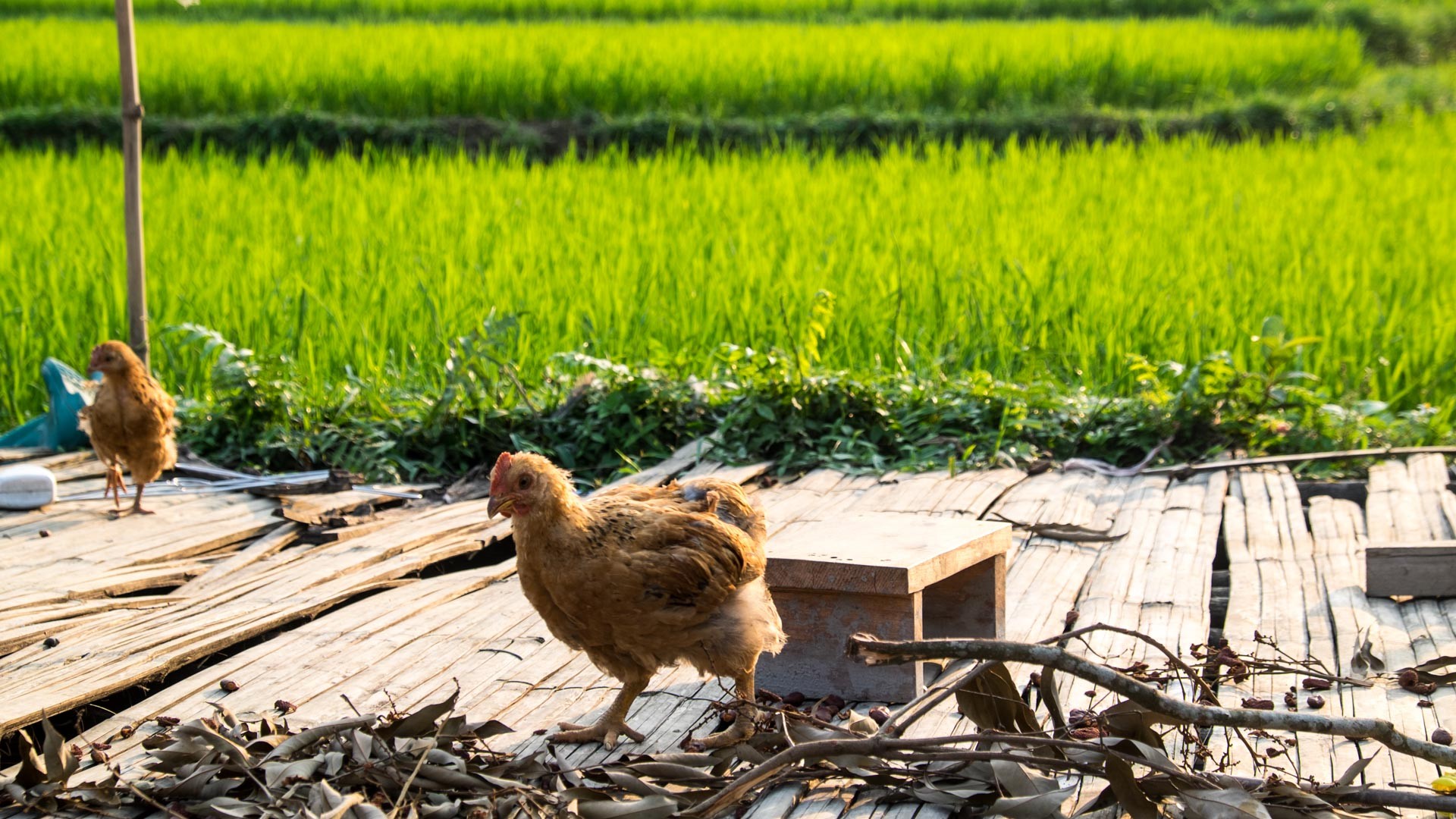 Reisfelder Hội Ans, auf denen gerade die Reisernte abgeschlossen worden ist. Von dem